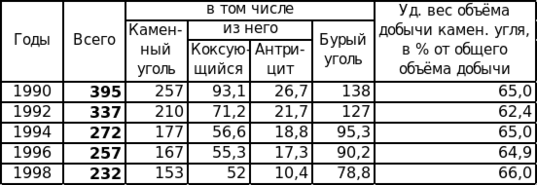 Весьма существенно, что 54% запасов расположено на глубине до 300 м, 34% - на глубине 300 – 600м. и 12% - на глубине 600 – 1800 м. Почли ½ запасов каменных и 2/3 бурых углей находятся в зоне глубин до 300м. в разных района запасы по зонам глубин распределяются далеко не одинаково. Ближе всего к поверхности залегают угли Урала (около 9/10 запасов – в зоне до 600 м.). Наиболее глубокое залегание угля характерно для европейской части России.2