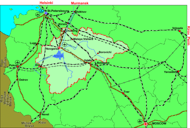 . Карта транспортных связей Новгородской области