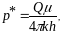 Уравнение, описывающее изменение давления на забое, т. е. при =h; r=rc или r=rc, имеет вид