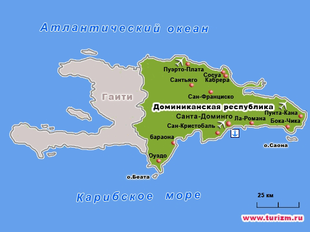 Рептилии. Этой группой животных, насчитывающей 140 разновидностей, чрезвычайно изобилует фауна Доминиканской Республики. В неё включаются змеи, ящерицы, черепахи и крокодилы. Пресноводные черепахи – эндемический вид, в большом количестве обитающий в лагуне Ринкон-де-Кабраль. Единственное место на Карибских островах, где можно встретить американских крокодилов (кайманов) – берега озера Энрикийо. Популяция уникального удава боа острова Эспаньола в последнее время сильно сократилась из-за большого количества мангуст, которые охотятся и на эту рептилию. В 1998 году учёными-биологами была обнаружена ящерица Харагуа – самое маленькое в мире позвоночное животное, его взрослые особи вырастают максимум до 2,8 см в длину. Полная противоположность этой ящерице – игуана-носорог, обитающая у берегов озера Энрикийо, её вес доходит до 10 кг, а длина составляет 1,2 м. Почва центрального региона Доминиканы очень похожа на почву соседнего острова, и посаженные кубинские семена дали хорошие растения.