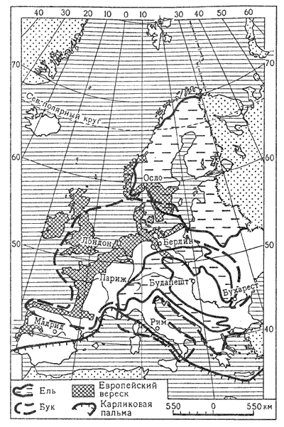 Рис. 17. Распространение некоторых растений в зарубежной Европе