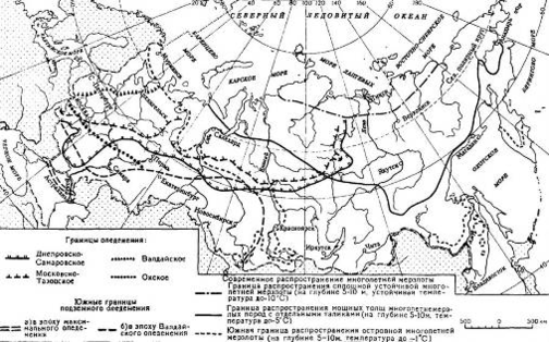 В ледниковые эпохи южнее границы ледника происходило глубокое промерзание почвогрунтов. Во время валдайского оледенения граница многолетней мерзлоты сместилась как никогда далеко на юг, до низовьев Дона — Волгограда.