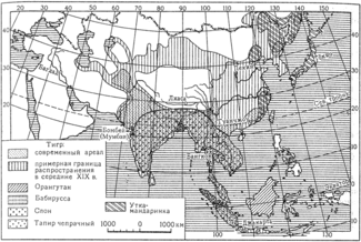 Рис. 22. Распространение некоторых животных в зарубежной Азии