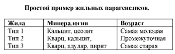 Соотношение с другими жилами. Это поперечный разрез или жилы секут другие жилы? Если жилы субпараллельные, то они идут одна вдоль другой или эшелоном? Являются ли жилы штоквереовые? Необходимо определить парагенезис жил (см. пример далее), выделяя их в виде типов 1, 2, 3 и т.д., описать морфологию, текстуры и минералогию каждого типа (как, например, в таблице 1).