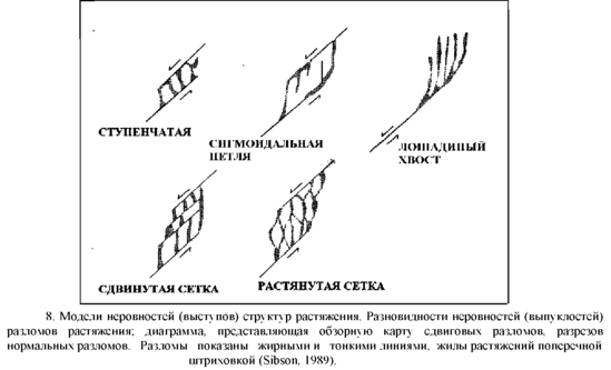 Морфология жил является отражением первоначального режима напряжений, который действовал во время образования жил. Обычно эпитермальные жилы почти вертикально направлены, вытянуты в линию и показывают строго субпараллельное простирание по одному, двум или трём главным направлениям. Эти детали строения жил являются следствием малоглубинности условий, в которых жилы размещались, и хрупкого дробления вмещающих пород. Предполагается, что многие эпитермальные жилы образуются в неровностях (выпуклостях) структур растяжения между эшелонами сдвиговых разломов (т. н. Вайхи, новая Зеландия). Sibson (1989) описывает морфологию неровностей растяжений, которые включают ступенчатые жилы, жилы типа сигмоидальной петли (жила которая отклоняется от своего направления, поворачивая обратно. Прим. БВИ), лошадиного хвоста и петель (сетки) (рис.8) и которые похожи на рисунок жил, наблюдаемых в эпитермальных жильных системах. Другие жилы ассоциируются с кальдерными структурами (т.н. рудник Емперор на острове Фиджи и Крид в штате Колорадо США), где разломы растяжения могут быть связаны с границами кальдер. В нескольких месторождениях горизонтальные напряжения такие, что многие жилы имеют почти горизонтальное положение (т. н. «флэтмейкс» на руднике Емперор, Фиджи).