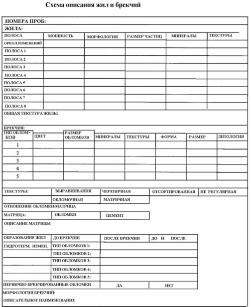 Описание жил рекомендуется начинать от границ к центру. Если она полосчатая, то в первую очередь надо начинать описание полос, ближайших к границам, а за ними последующих и т.д. Осмотреть: