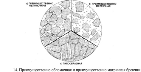 Является ли брекчия преимущественно обломочной, или сложена преимущественно матрицей (рис. 14)?