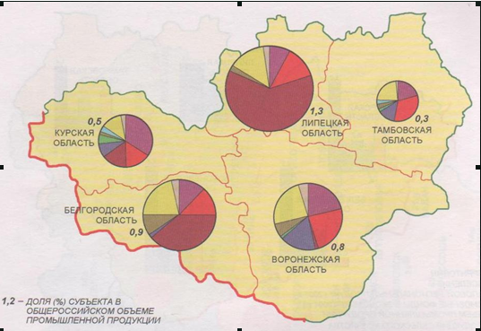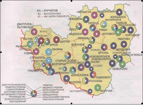 * потенциальная конкурентоспособность на внутреннем и внешнем рынках предприятий авиастроения и радиоэлектроники (Воронежская область), химического машиностроения (Тамбовская область), тракторного машиностроения (Липецкая область), промышленности строительным материалов (Липецкая, Белгородская области);