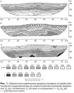 В результате интерпретации сейсмических материалов были построены сейсмофизические модели насыпных гидротехнических сооружений: земляного полотна Шипуновского водохранилища и дамбы Карасевского водохранилища.