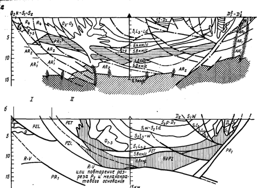 Прогнозные модели верхней части земной коры района Уральской СГ-4 ( с упрощениями авторов)