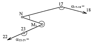 1.4 Решить обратные геодезические задачи и вычислить проектные (правые по ходу) углы (таблица 9) при точках 23, М, N, 17 (с округлением до 0,10) и горизонтальные проложения (с округлением до 0,1 м).