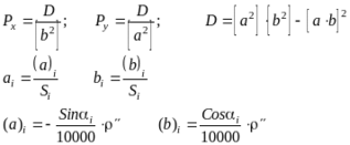 Для определения СКО положения опознака Мр определенного из обратной многократной засечки опрделим веса Рх и Ру