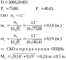 окончательное значение высоты опознака равно среднему весовому из значений высот получаемых по каждому направлению, то СКО окончательной высоты равна: