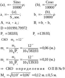 4.2.1. Расчет точности планового положения опознака ОПВ № определенного из прямой многократной засечки.
