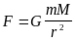 Согласно закону тяготения Ньютона, сила притяжения F определяется из выражения:
