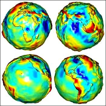 Такой карты не было еще никогда. Переливы цветов показывают еле уловимые изменения гравитационного поля Земли. Если бы вам пришлось пролетать над красными зонам, вас бы тянуло вниз чуть сильнее, а голубым обозначены области, где притяжение планеты слегка ослабевает. Гравитационные аномалии не воспринимаются человеческими органами чувств, поэтому ученые нанесли эти данные на сферу, преувеличив пики и провалы. Так была получена удивительно четкая иллюстрация предмета исследования. Выглядит она, возможно, несколько странно, но не надо обольщаться – эта карта и те, что последуют за ней, позволят получить новые сведения о том, как океаны движутся и влияют на климат. Само понимание того, как парниковые газы могут изменить планету, будет зависеть от этих пиков и впадин. Карта была составлена совместной американо-германской экспедицией Grace (Эксперимент по реверсии гравитации и климата). К арта – первый продукт проекта, в котором участвуют два спутника, находящихся в 450 км от Земли. Спутники собирают информацию, выполняя тщательно выверенные маневры на орбите. В то время как один покачивается и медленно перемещается в неровном гравитационном поле земли, второй, следующий на расстоянии 220 километров, измеряет колебания в разделяющем их расстоянии вплоть до микрона. Именно изменения расстояния и описывают природу и масштабы гравитационных аномалий, над которыми пролетают спутники. Очевидные пики гравитации были известны уже некоторое время - например, Гималаи, где масса продолжает накапливаться вместе с гравитационным притяжением, в то время как порода собирается в этой области в результате перемещения тектонических плит Земли. Но собрать подробности удалось только с помощью Grace, особенно в отношении океанов, которые образует постоянно перемещающаяся водная масса. Первая карта, созданная Grace, статична – своего рода "гравитационный слепок" Земли. Но этот профиль постоянно изменяется – вместе с движениями земной коры, океанов и атмосферы над ними. Теперь Grace будет раз в 30 дней присылать на Землю новый профиль, из которых в будущем можно будет составить динамическую модель и следить за изменениями.