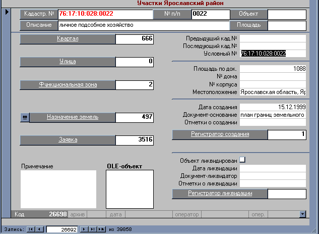 Внесение записей в Единый государственный реестр прав на недвижимое имущество при отсутствии указанных противоречий и других оснований для отказа или приостановления государственной регистрации прав производится на магнитный носитель, для хранения всей базы данных используется программа Geocad 3.2.