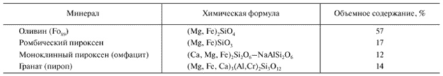 Таблица 1. Минеральный состав пиролита (по Л. Лиу, 1979)