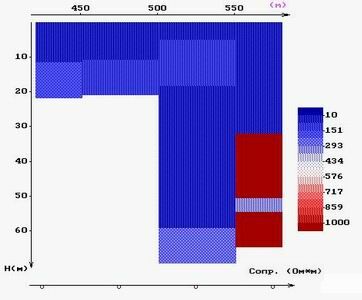 рис.1 Результаты интерпретации ВЭЗ по фрагменту одного из профилей.