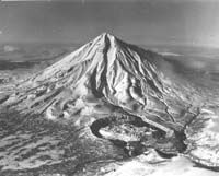 Сильнейшее извержение начала следующего ("андезито-базальтового") этапа произошло около 3500 14С л.н., когда в вершинном кратере начал расти Молодой конус. Объем пирокластики составил ~4 км3, пирокластические потоки и пирокластические волны распространялись на расстояние 12-15 км. Главная ось пеплопада была направлена на северо-северо-восток, пепел прослежен в разрезах на протяжении 300 км от источника; он присутствует также в торфянике Командорских островов (мощность 0,5 см). Пепел АВ1 с характерным андезитобазальтовым составом является прекрасным маркирантом для Восточной вулканической зоны Камчатки [33]. Рассматриваемое извержение открыло новый этап в жизни вулкана - андезитовые пемзовые продукты его предшествующей голоценовой истории сменились темными шлаками андезитобазальтового состава. В дальнейшем Молодой конус давал частые (с интервалом от нескольких лет до десятков, реже сотен, лет) извержения, наиболее сильным из которых в историческое время было извержение 1945 г. Во время этого извержения менее чем за 7 часов было выброшено около 0,3 км3 шлаков, которые явились прекрасным подарком городу как замечательный строительный материал.