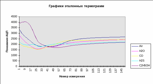 В этой формуле г –проводимость сенсора в газовой смеси, -проводимость сенсора в эталонной газовой смеси (чистый воздух). Сумма берется по всем точкам термограммы.