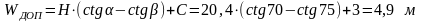 где - угол откоса вскрышного уступа, = 70 градусов;