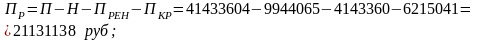 ПКР – оплата за кредит, 15 % от прибыли, ПКР =6215041 рублей.