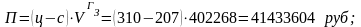 ПРЕН – фиксированные платежи, 10 % от прибыли, ПРЕН =4143360рублей;