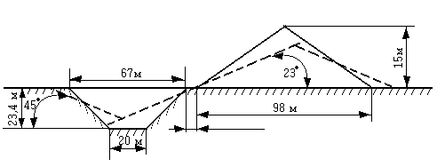 | Высота развала от точки пересечения с откосом уступа | h5 | м | 14,1 |