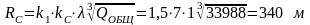 RC = 350 м.: RН = 1600 м. и RР = 250 м.