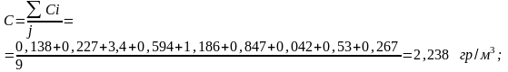 Бортовое содержание полезного компонента Сб=0,25 гр/м3;