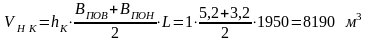 где ВПОВ, ВПОН – ширина канавы поверху и понизу соответственно, ВПОВ=5,2 и ВПОН=3,2;