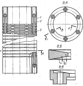 1 – труба; 2 – отверстия в трубе; 3 – вкладыши; 4 – щели во вкладыше
