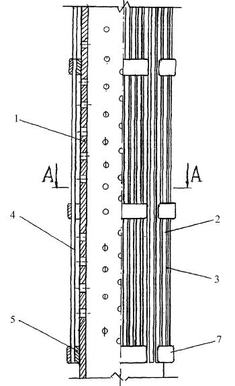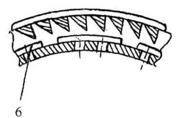 треугольников, установлены острым углом в продольные пазы опорных колец 5 и образуют между собой продольные каналы с односторонним расширением, а катеты образуют наружный диаметр фильтрующей оболочки.
