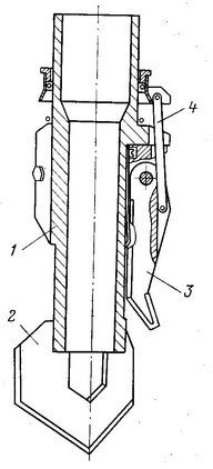 1 – корпус; 2 – породоразрушающий наконечник; 3 – лопасть-расширитель; 4 – тяга