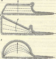 Способ перемещения фронта отвальных работ определяет схему развития отвалов в плане. Различают три способа перемещения фронта отвальных работ: параллельный, веерный и криволинейный (рис. 7.1).