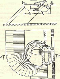 Рисунок 7.3 - схема возведения первоначальной насыпи из мягких пород колесным скрепером: