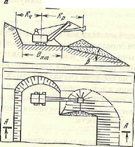 а - мехлопатой на косогоре; б - драглайном на равнинной местности