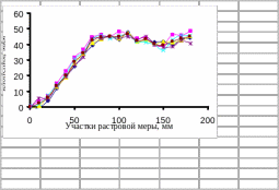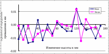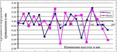 По результатам многократных измерений построен график погрешности (рис.8). В данном эксперименте систематическая погрешность не превышают 50 мкм. Полученные значения являются калибровочными и их следует вводить как поправки при поверке и калибровке тахеометров (нивелиров) на вертикальном стенде.
