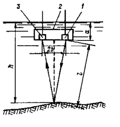 где b — половина расстояния между излучателем и приемником звука; l — путь, проходимый звуковой волной от излучателя до дна или от дна к приемнику звука; а — глубина погружения под воду излучателя и приемника звука;