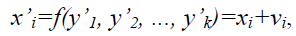 де Xi і Yj – дійсні значення елементів і параметрів геодезичної побудови. При зрівнюванні параметричним способом визначають зрівняні значення параметрів y’1, y’2, ..., y’k, необхідних для представлення всіх елементів геодезичної побудови в наступному вигляді: