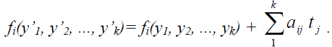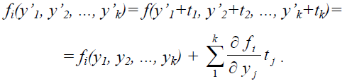 Розкладемо функцію fi(y’1, y’2, ..., y’k) в ряд Тейлора і, обмежуючись лише лінійними членами, отримаємо:
