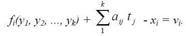 Для приведення цих рівнянь до лінійного вигляду знаходимо наближені значення невідомих параметрів y1, y2 ..., yk і представляємо їх зрівняні значення у вигляді: