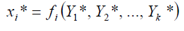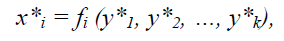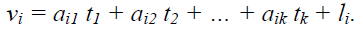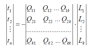 - вектор вільних членів системи параметричних рівнянь поправок l= f(y1, y2 ., yk) – xi;