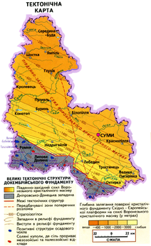 Прояв кам’яного вугілля в межах Сумської області приурочений до нижньо- або середньокарбоновим відкладам. Як правило, виділяються декілька пластів робочої потужності, але враховуючи їх глибоке залягання на даний момент вони практичного значення не мають, так як потужність пластів невелика, а глибина їх залягання значна. В Роменському, Липоводолинському, Охтирському районах вона складає 600-1500м й навіть більше.