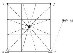 Досить визначити координати двох точок А і В, щоб зорієнтувати земельну ділянку АВ12. На стороні АВ за допомогою теодоліту і мірної стрічки розмічають сітку квадратів довжиною сторони, визначеної технічним завданням. Загально прийнято призначати сторони квадратів довжиною 5,10, 20 і 50 м. Вершини квадратів на місцевості фіксують за допомогою дерев‘яних кілочків.