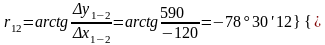 α 1-2=180°-78°30'12"=101°29'48"