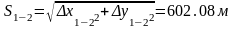 Определим дирекционный угол и длину линии для направления 1 – 2.