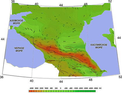 Горные сооружения Большого и Малого Кавказа располагаются в области континентальной коллизии (столкновения) литосферных плит. Рисунок 1 дает представление о региональной геодинамикеобширной области от Северной Африки и Аравийского полуострова на юге, до южного склона Восточно-Европейской платформы на севере. В этой области представлены самые разные геодинамические обстановки: