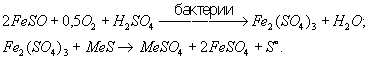 Thiobacillus ferrooxidans (Th. ferrooxidans), способные окислять сульфидные минералы и закисное железо до окисного (так называемые железобактерии), и Thiobacillus thiooxidans (так называемые серобактерии). Тионовые бактерии являются хемоавтотрофами, т. е. единственный источник энергии для их жизнедеятельности — процессы окисления закисного железа, сульфидов различных металлов и элементарной серы. Эта энергия расходуется на усвоение углекислоты, выделяемой из атмосферы или из руды. Получаемый углерод идёт на построение клеточной ткани бактерий. Thiobacillus thiooxidans окисляют сульфидные минералы до сульфатов прямым и косвенным путём (когда микроорганизмы окисляют сернокислое закисное железо до окисного, являющегося сильным окислителем и растворителем сульфидов):